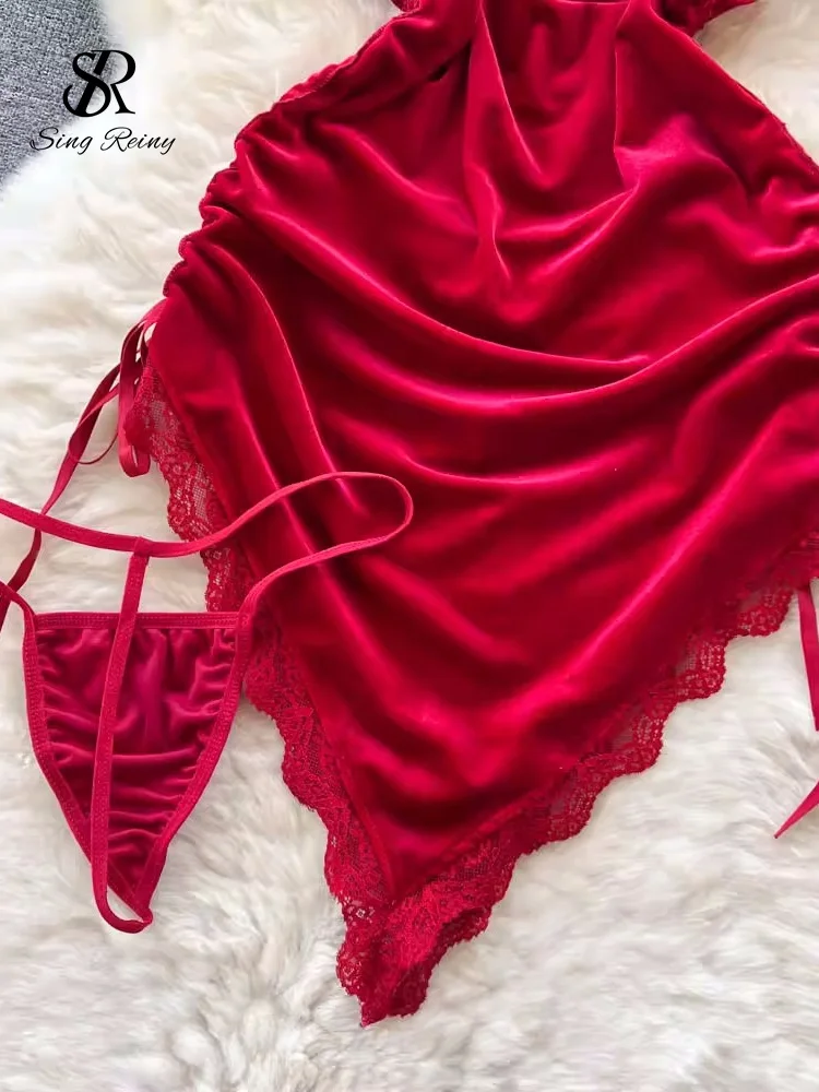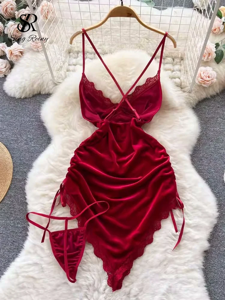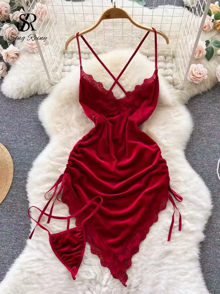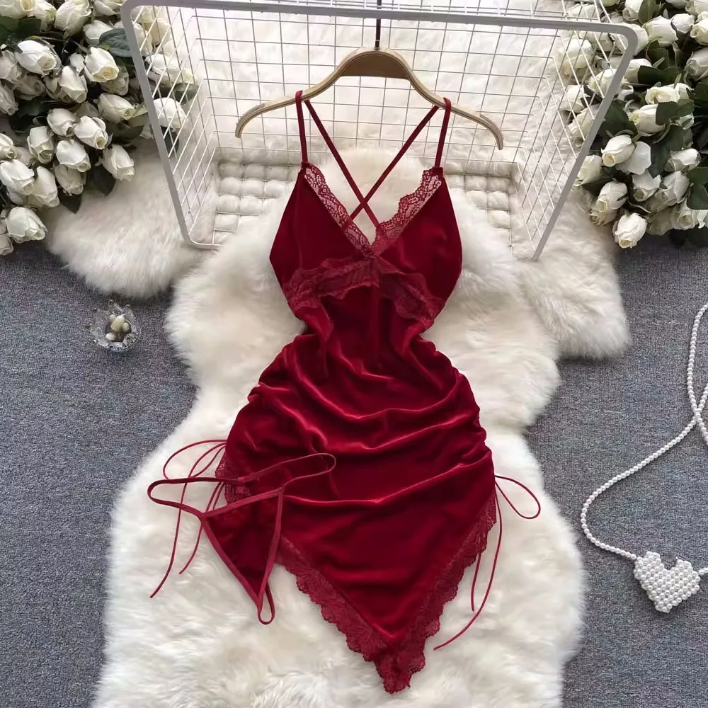 A sleek velvet night dress designed with a deep V-neckline and an asymmetric wrap silhouette. The soft velvet fabric drapes smoothly over the body, while the side lace-up detail adds adjustable shaping. Lightweight and refined, this piece is made for elegant evening wear with a bold, modern edge.