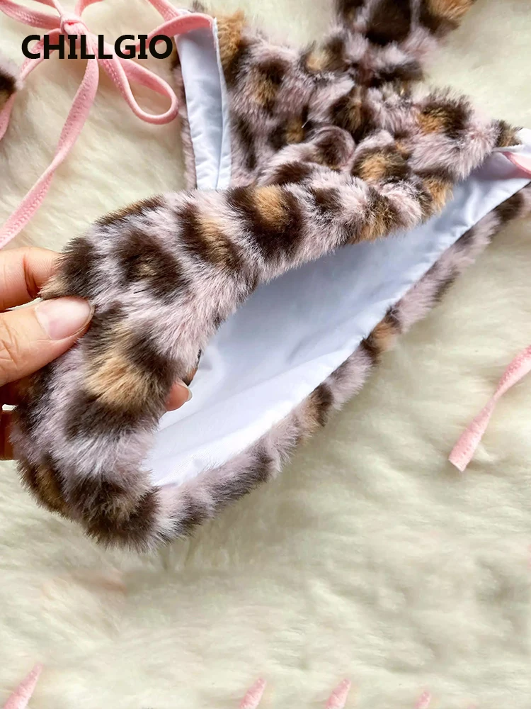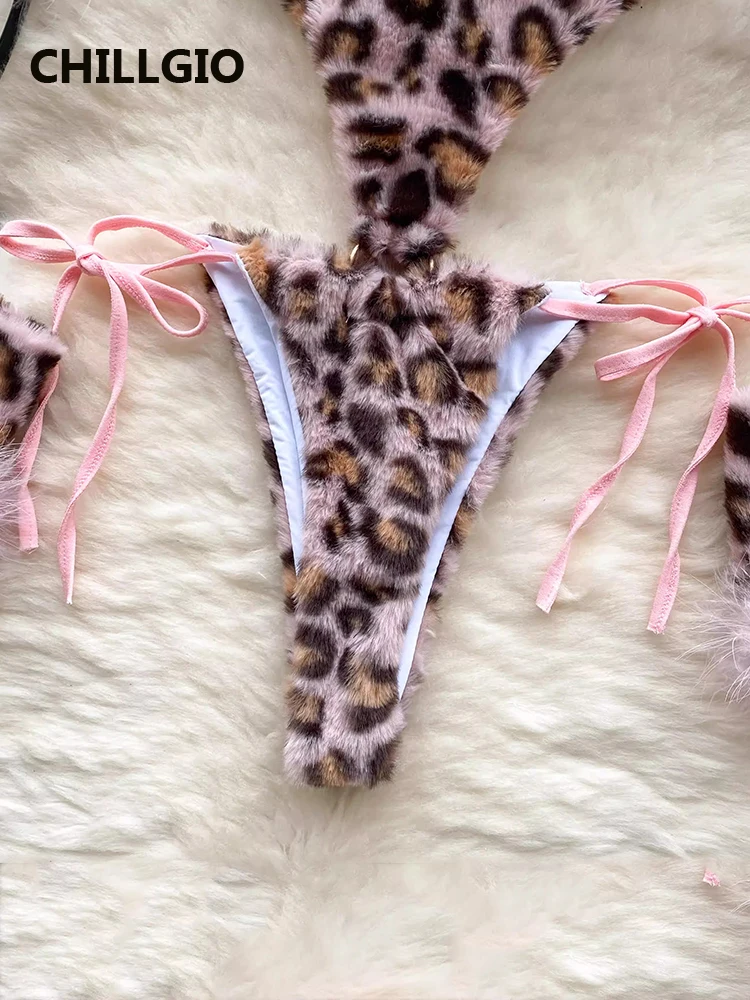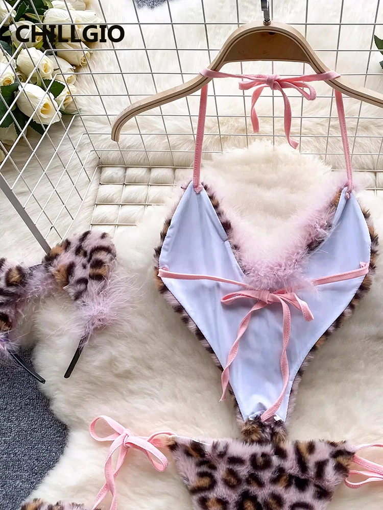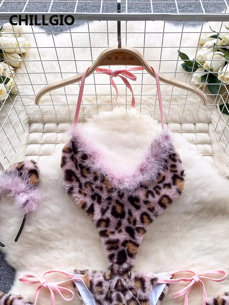 The Leopard Feather Trim Bodysuit Set features a bold leopard print paired with soft velour texture and feather accents for a playful yet refined look. Designed with a slim, high-waist silhouette and adjustable tie details, it balances statement style with comfortable wear.
